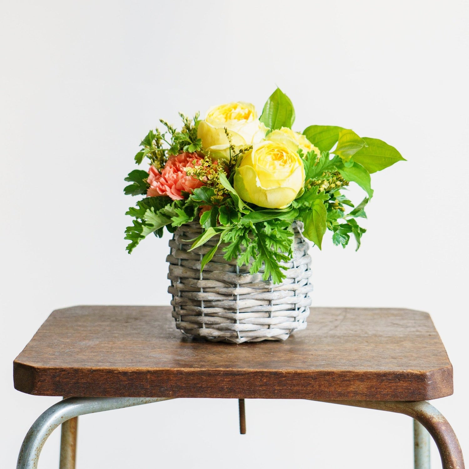 陽春のアレンジメント ガーベラ アレンジメント ピンク M バスケットタイプ